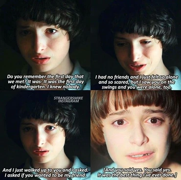 That scene with Will being possessed and strapped to the chair while Mike is trying to bring him back by talking about their childhood made me wanna cry ngl-