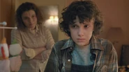 Узнав свое настоящее имя и имя своей матери, Одиннадцать направилась в дом Терри. Бекки пыталась прогнать её, приняв за попрошайку, но, после того, как девочка открыла дверь с помощью своих способностей, впустила в дом и отвела к матери. Во время экскурсии по дому они заметили странное мигание ламп, и Бекки сказала, что это это часто происходит из-за перепадов напряжения, однако Одиннадцать увидела, что таким образом мама подавала ей сигналы. Одиннадцать телепатически связалась с Терри и узнала о ее прошлом, о событиях, которые сделали ее неподвижной, и, главное, о другом ребенке, которого она видела в лаборатории. Уверенная, что мама хочет, чтобы она нашла этого ребенка, девочка хотела поделиться этим со своей тетей, но обнаружила, что та пыталась по телефону связаться с Джимом Хоппером. Решив действовать в одиночку Одиннадцать украла у нее деньги и сбежала в Чикаго.