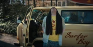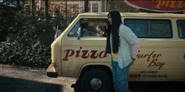 Two button pins on Argyle's Surfer Boy Pizza visor