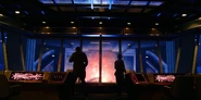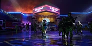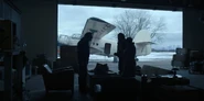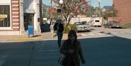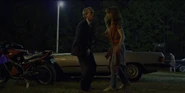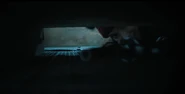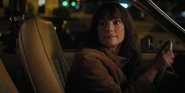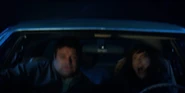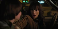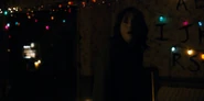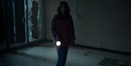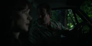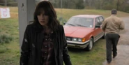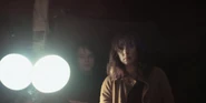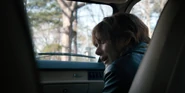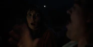Joyce about to drive away when she hears music play and sees lights flickering.
