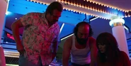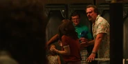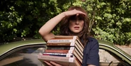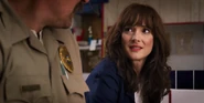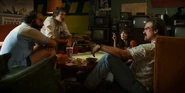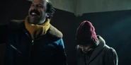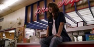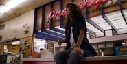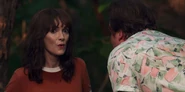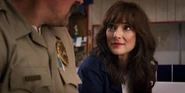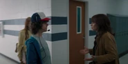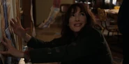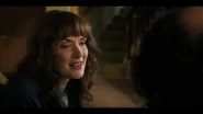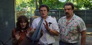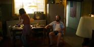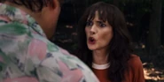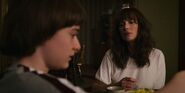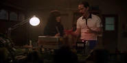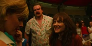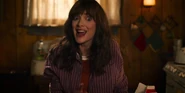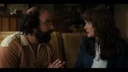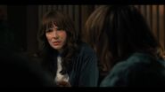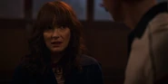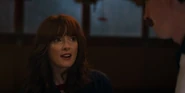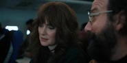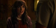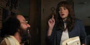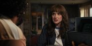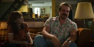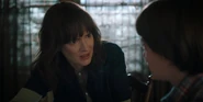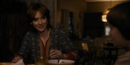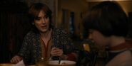 Joyce laughing as she reminisces memories with Hopper in high school.