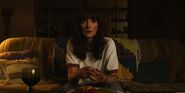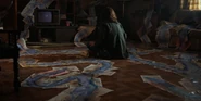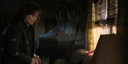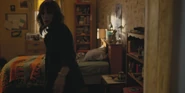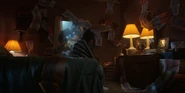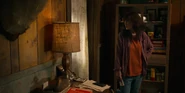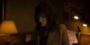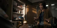Joyce observing a glowing lamp in Will's room.