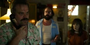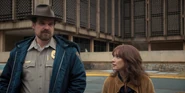 Joyce being reassured by Hopper that things will get better in time.