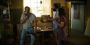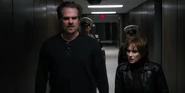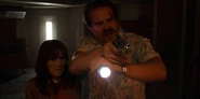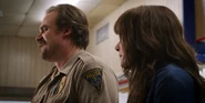 Joyce discussing Will's episodes with Hopper.