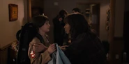 Joyce showing Hopper the comparison to Will's drawing.