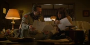 Joyce showing the drawing to Will.
