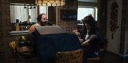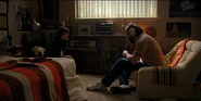 Joyce listening to Bob talk about his past.