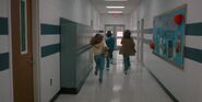 Joyce leaving to go to the school.