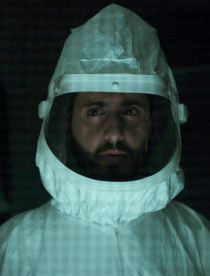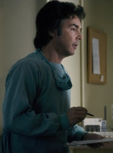 The technician informing Hopper and Joyce of the Upside Down's toxic atmosphere.