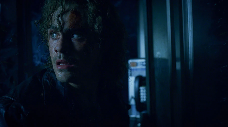 Billy Hargrove flees from the basement of Brimborn Steel Works after being attacked and drives to the nearest phone booth. He calls the police but remembers the fleshy tendril that took him attaching itself to his mouth. The light begins to flicker, and he suddenly flashes into the Upside Down. A shadowy group of people approach, and he shouts at them, asking them what they want. One figure walks up to him, and he sees it is a cleaner, uninjured version of himself.
