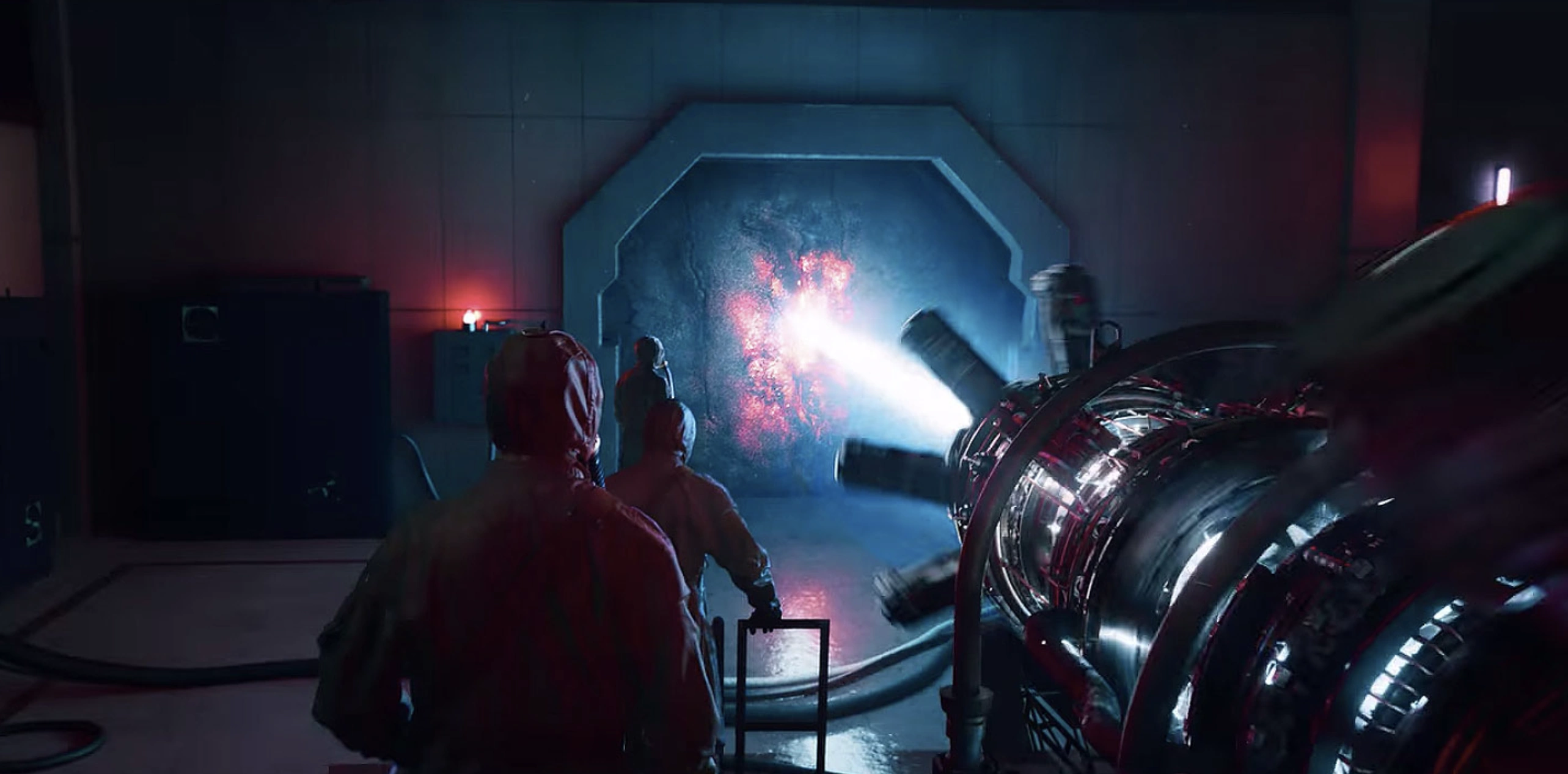 The next day, Brenner selected one of his lab workers, Shepard, to pass through the gate. However, Shepard's expedition was cut short after he was brutally attacked by the Monster; when the workers reeled the security line back in, only a bloody fragment of Shepard's hazmat suit remained.